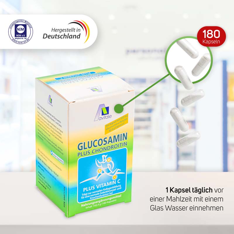 Avitale Glucosamine Capsules are produced in Germany by a certified pharmaceutical manufacturer using carefully selected, premium-quality raw ingredients.