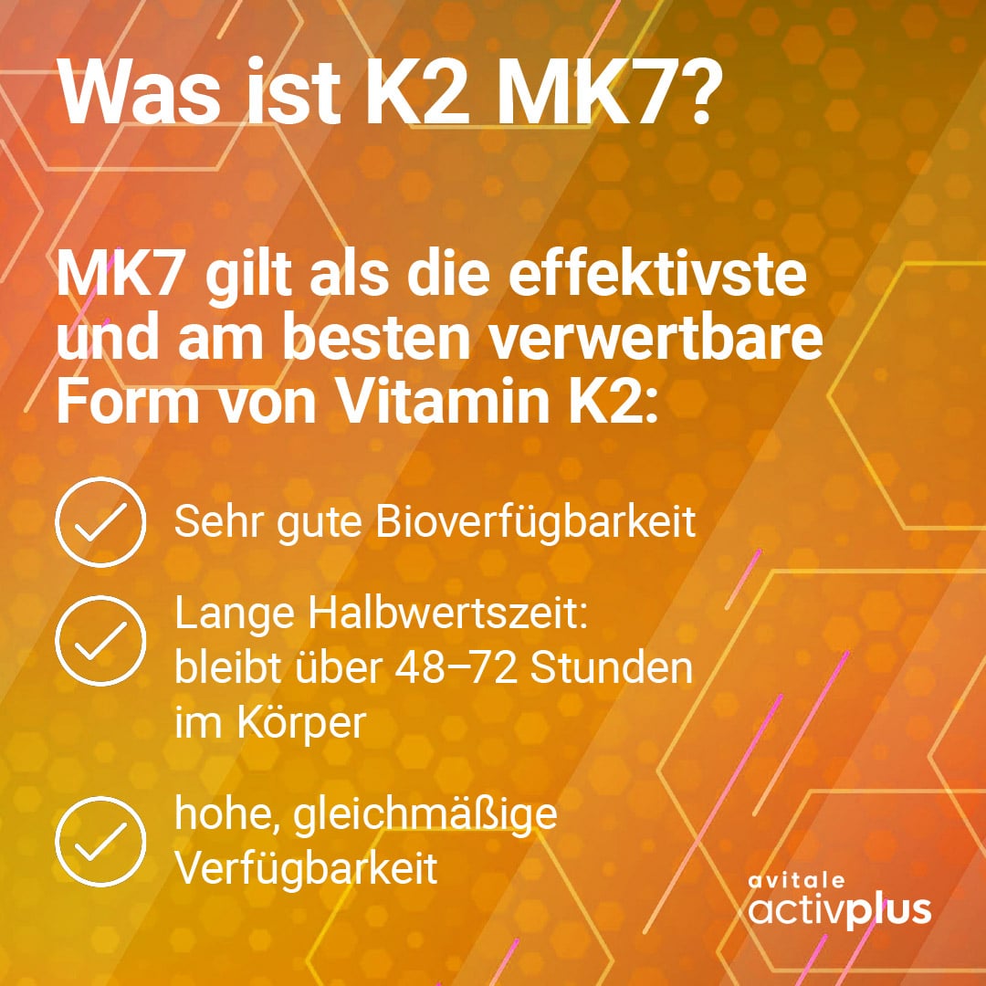 Füllstoff: Mikrokristalline Cellulose; Menachinon (Vitamin K2/all-trans MK-7), Cholecalciferol (Vitamin D3), Trennmittel: Tricalciumphosphat, Calciumsalze der Speisefettsäuren